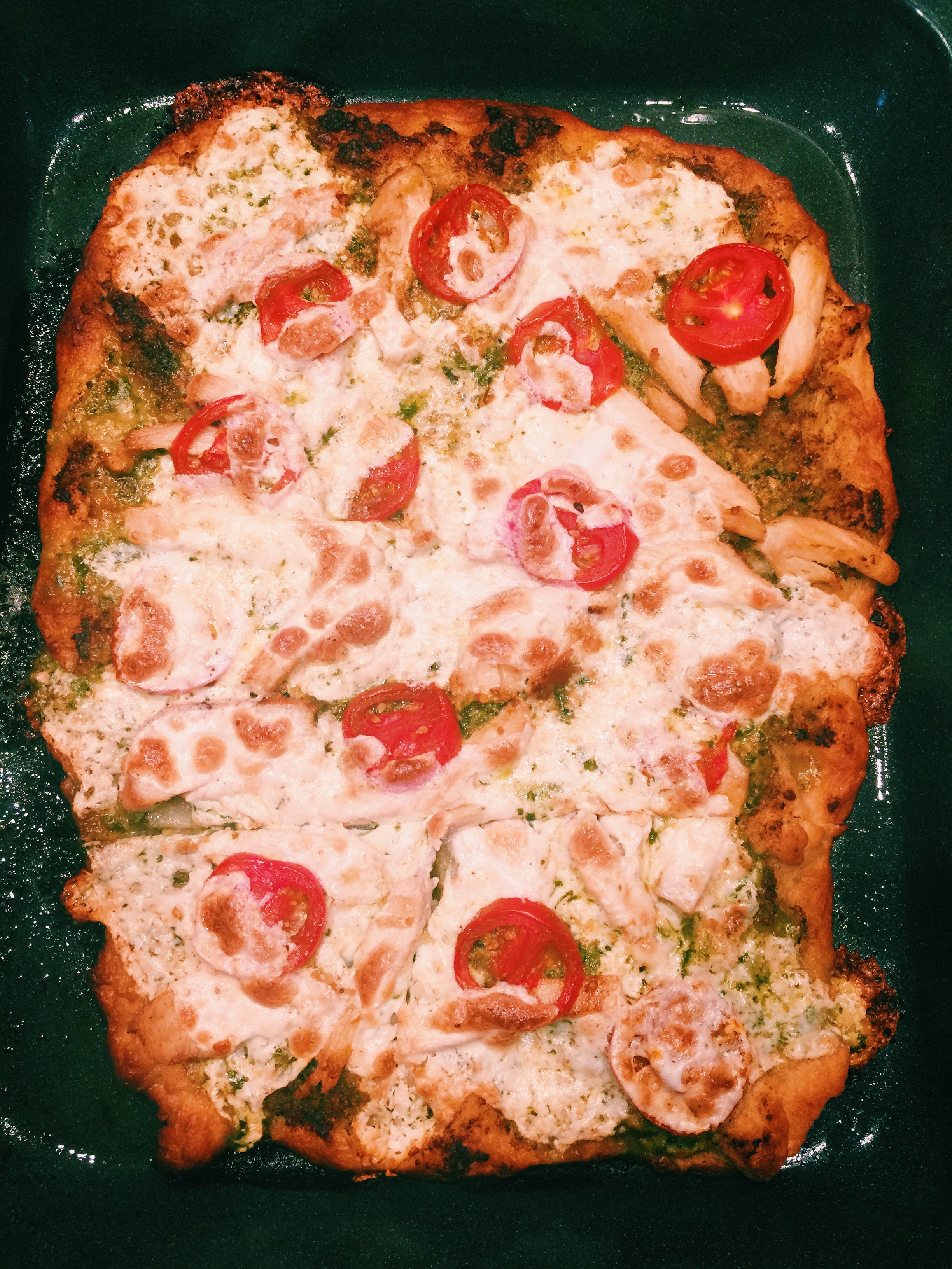 I have cooked a lot of things over the years but pizza hasn’t made its way to my kitchen often. I was quite skeptical at first but I was determined to make something new and something different hence the Basil Pesto Mozzarella Chicken pizza (such a creative name, right?). Surprisingly enough, it was so easy to make! After approximately 15 minutes in the oven, the whole house was smelling of roasted garlic and basil pesto. It came out so beautifully but most importantly, it tasted absolutely delicious. If you’re interested in the recipe, check it out here!