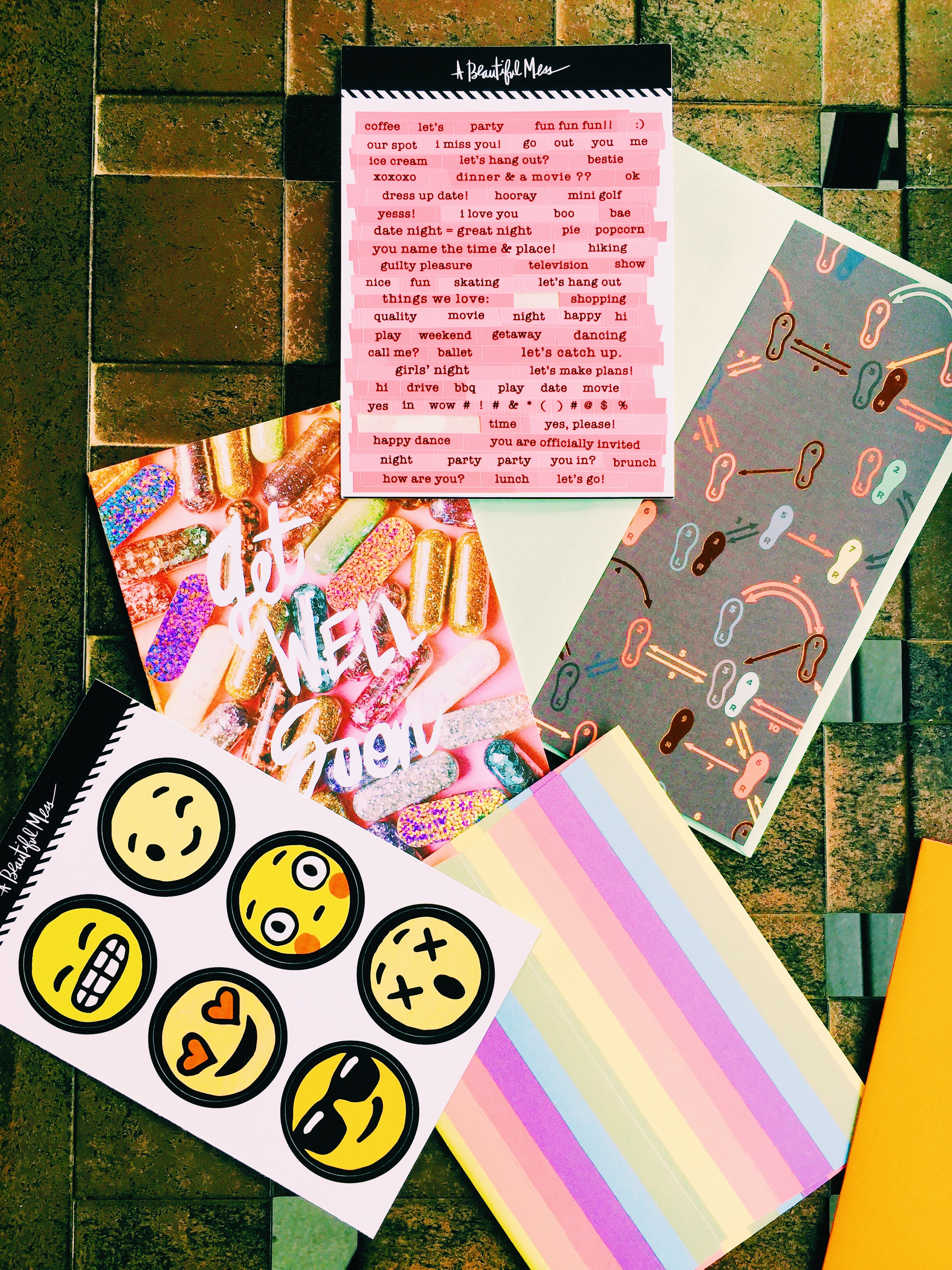 I subscribe to A Beautiful Mess Happy Mail and I receive colorful cards and stationary every month. As a fan of handwritten letters, it’s definitely something I look forward to when the first of every month rolls around.