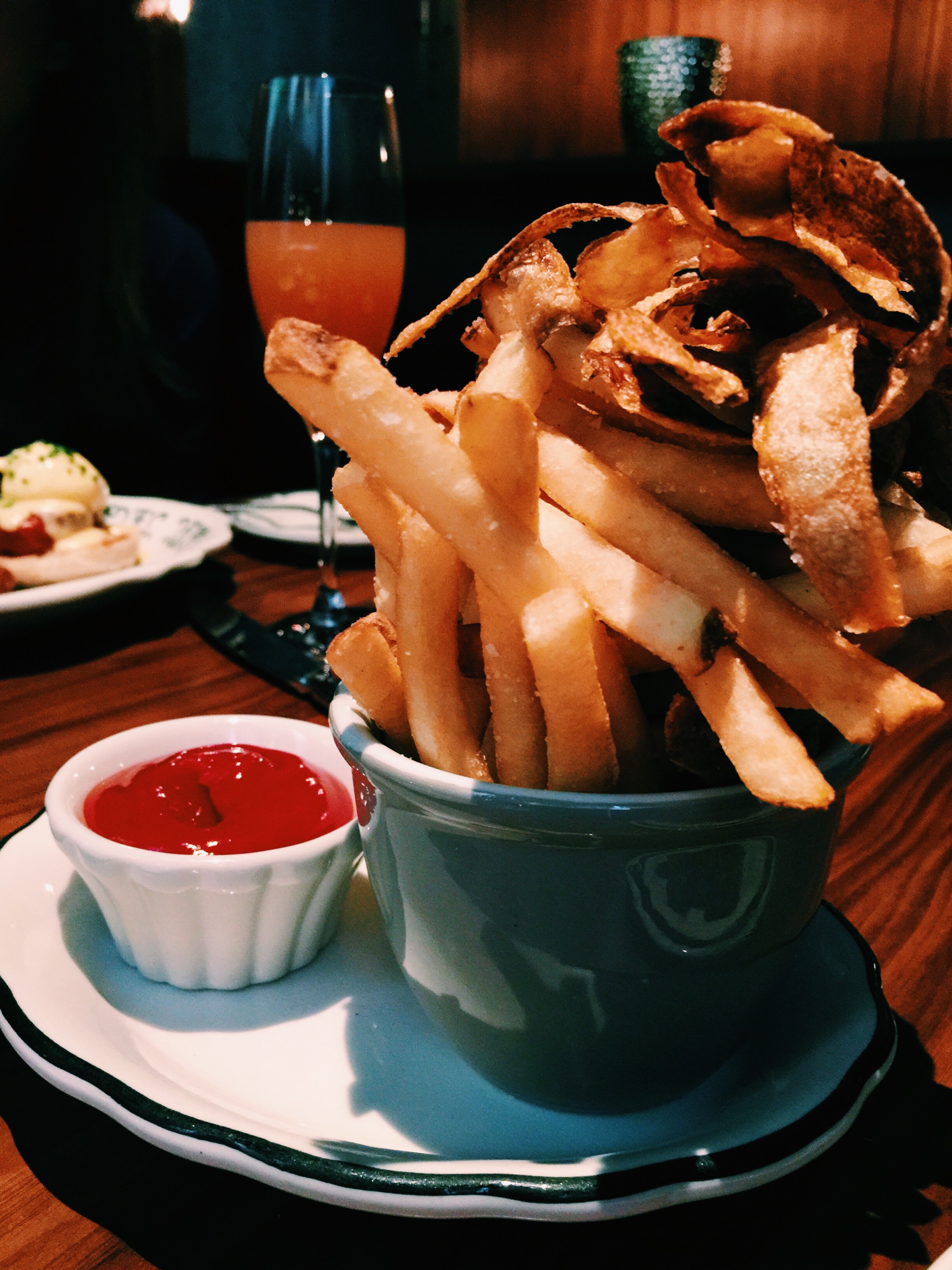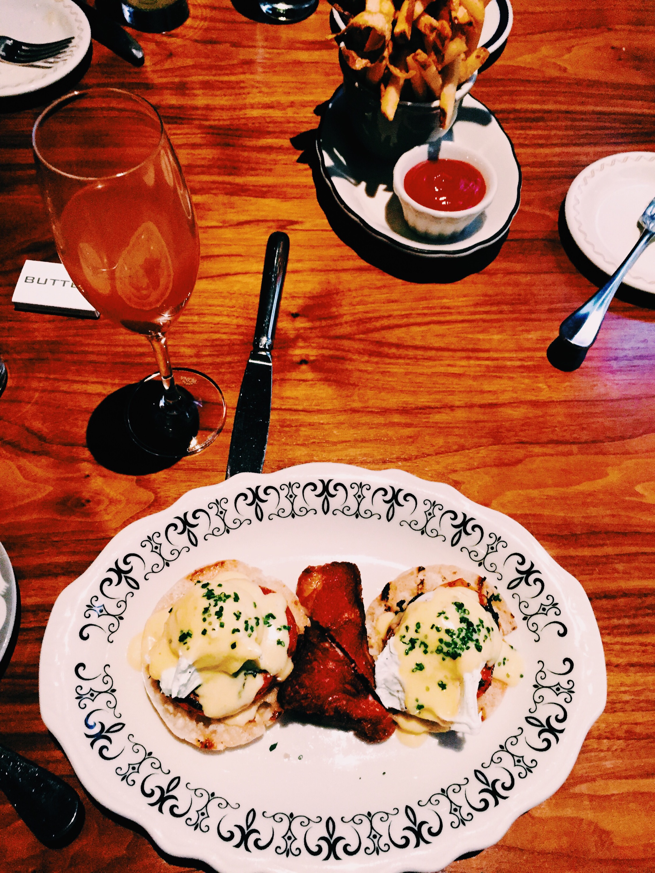 This meal was a sweet hug from the south. From the mouth-watering Bacon Mac and Cheese to the well crafted french fries to the enticing Eggs Benedict to the classic omelette to the Seared Florida Shrimp to the Strawberry Rhubarb Cinnamon French Toast, you’d think we were somehow below the Mason Dixon line, not Manhattan. Oh and the mimosas, we can’t forget those mimosas!